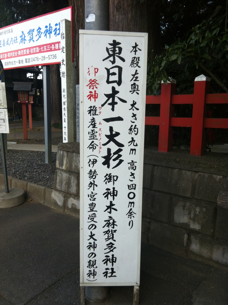 いつも成田山に参拝する際にこの前の道を通っていますが、東日本一大杉と大きな看板が掲げられています。