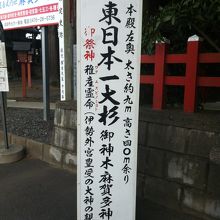 神社の中に入ると確かに巨木な杉があります。東日本一かどうかは、二番目に大きな杉を知りませんので定かではありませんが。