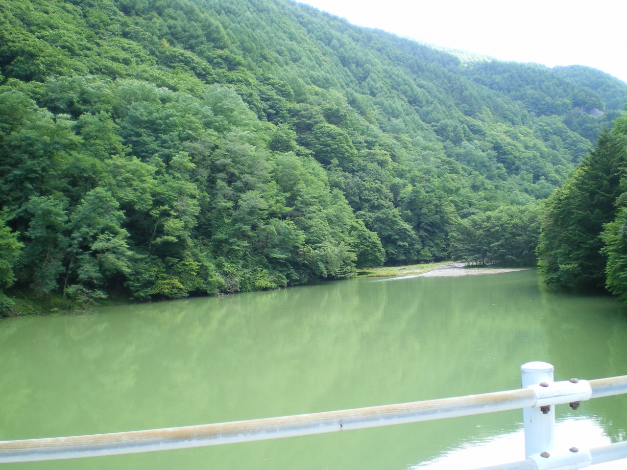 玄関を出て右手に山道を15分ほど進むと小さなダム湖に出ます。ダムの真ん中には橋が架かっていて、その橋の上からは松本の方向に遠くに山々が連なる風景を見ることが出来ます。宿からは山の斜面に遮られて遠景を望むことは出来ないので、ここまで少し足を伸ばすだけで「あぁ山に来たのだなぁ」と実感します。