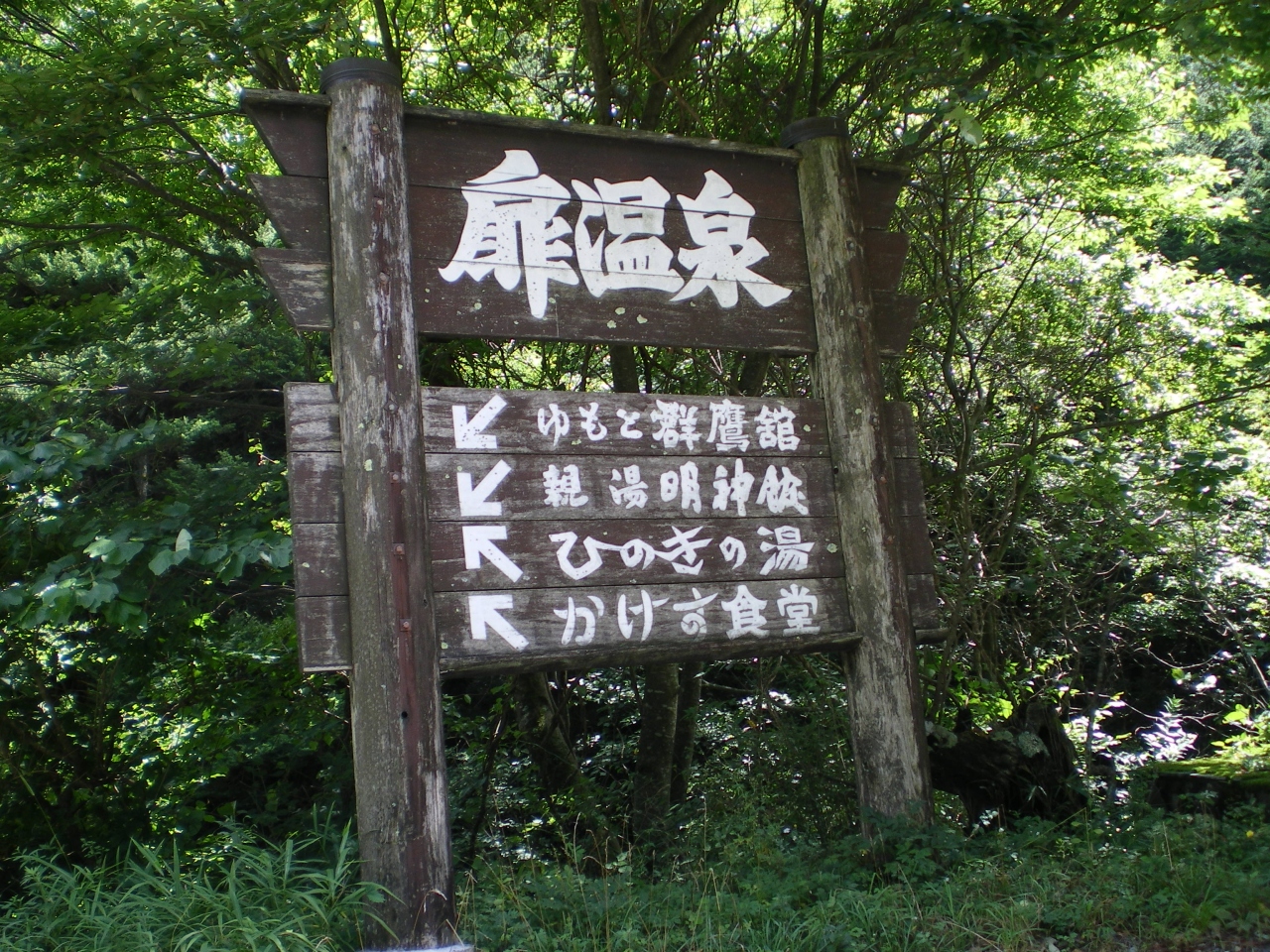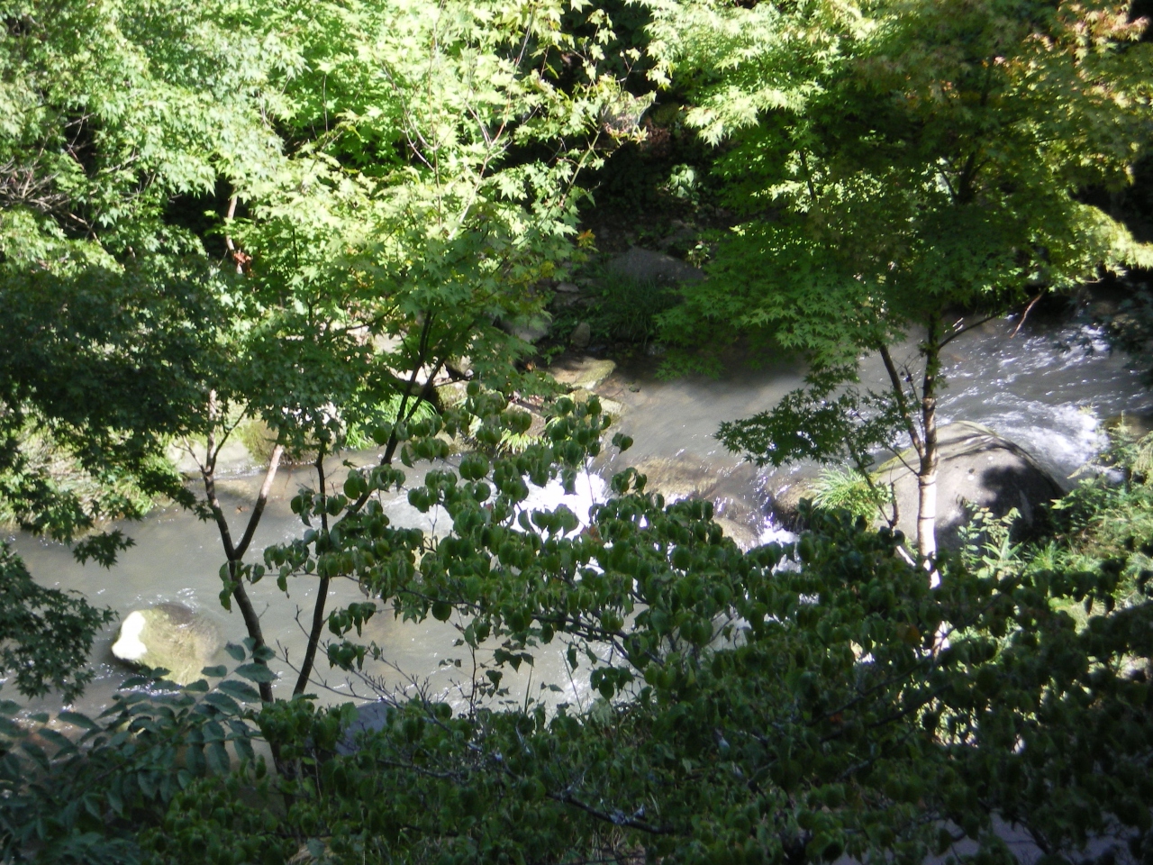 橋を渡りきり再び15分ほど進むと左手に日帰りの公共の温泉と小さな食堂に出ます。こんなに山奥の温泉に来るのかしら?と思っているとちょこちょこ車が登ってきました。松本の市街地に済む方が利用するのでしょうか?隣の食堂も明神館に連泊する方には使えます。ここから明神館へは5分ほどです。