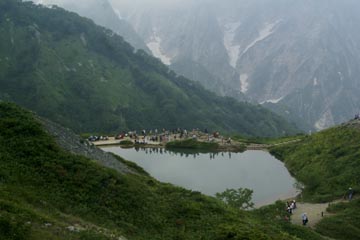 以前来たときは快晴の中、白馬岳が良く見えましたが、この日は不帰ノ嶮は雲間に見えていますが、白馬岳が雲の中です。