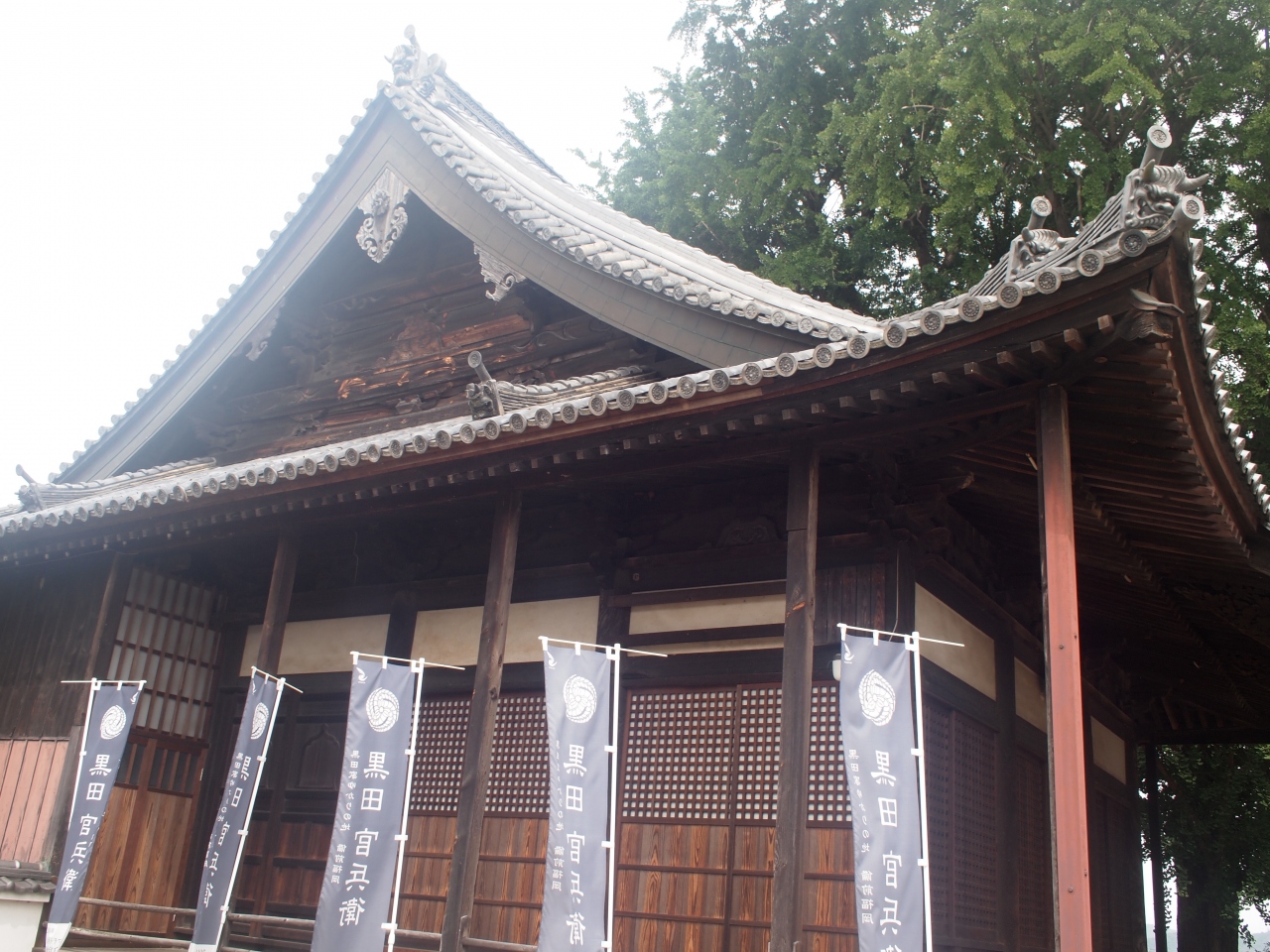 黒田官兵衛の曾祖父黒田高政、祖父黒田重隆の墓がある日蓮宗の寺院です。昔はもっと大きなお寺だったようです。早くも大河ドラマの幟が飾られていました。黒田墓地は境内にありますが、どの墓石が誰の墓か解りませんでした。それでも全国から参拝者が来られる僧です。備前国の戦国大名で、黒田官兵衛とも戦った宇喜多直家の父、宇喜多興家(彼は官兵衛とは戦っていません)の墓もありました。
