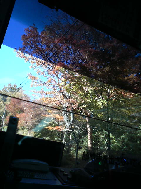 早雲山の紅葉の間を抜けて登っていくケーブルカーで、両脇の紅葉に染まった木々や線路の先に見える早雲山の山並みなど、なかなかの眺めを楽しめます。