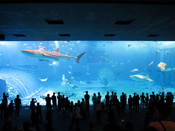やはり見ものはジンベイザメ、マンタの複数飼育が日本でも著名な大水槽。その他館内は工夫された展示もあり、楽しめる内容です。