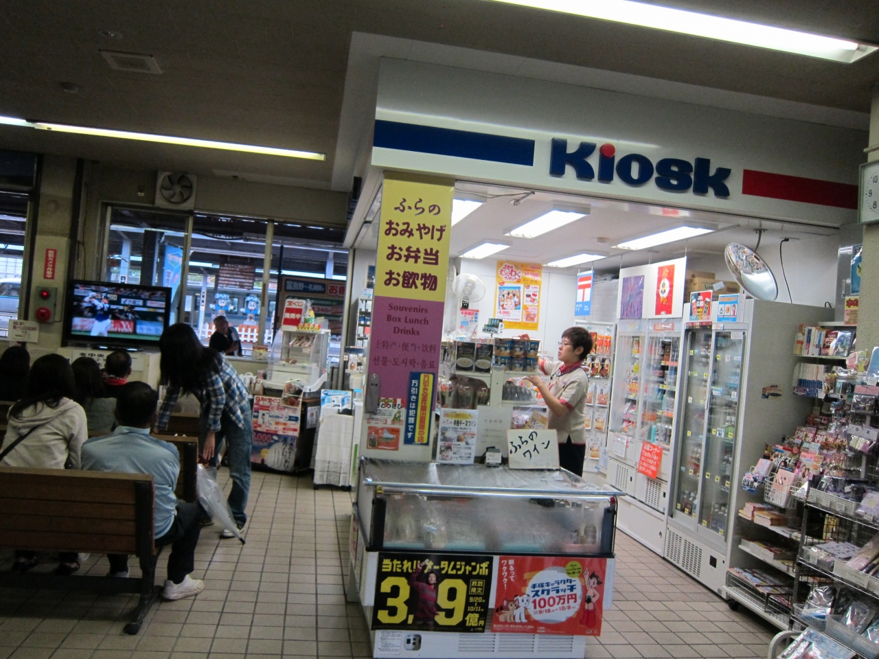 ・「へそじまん」、「へそのおまんぢう」など富良野のオーソドックスなおみやげを売るキオスク
