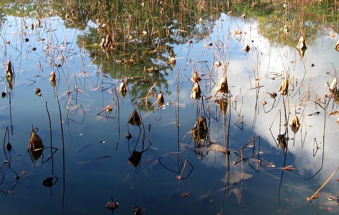 池には3000本(枯れていた)といわれている蓮が群生し、