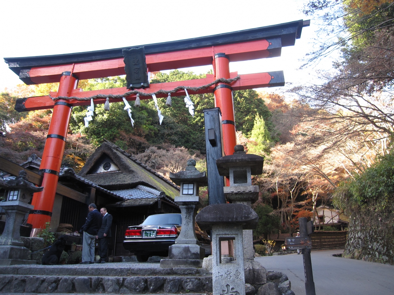 家並みの奥に赤い大きな鳥居が見えてきた。