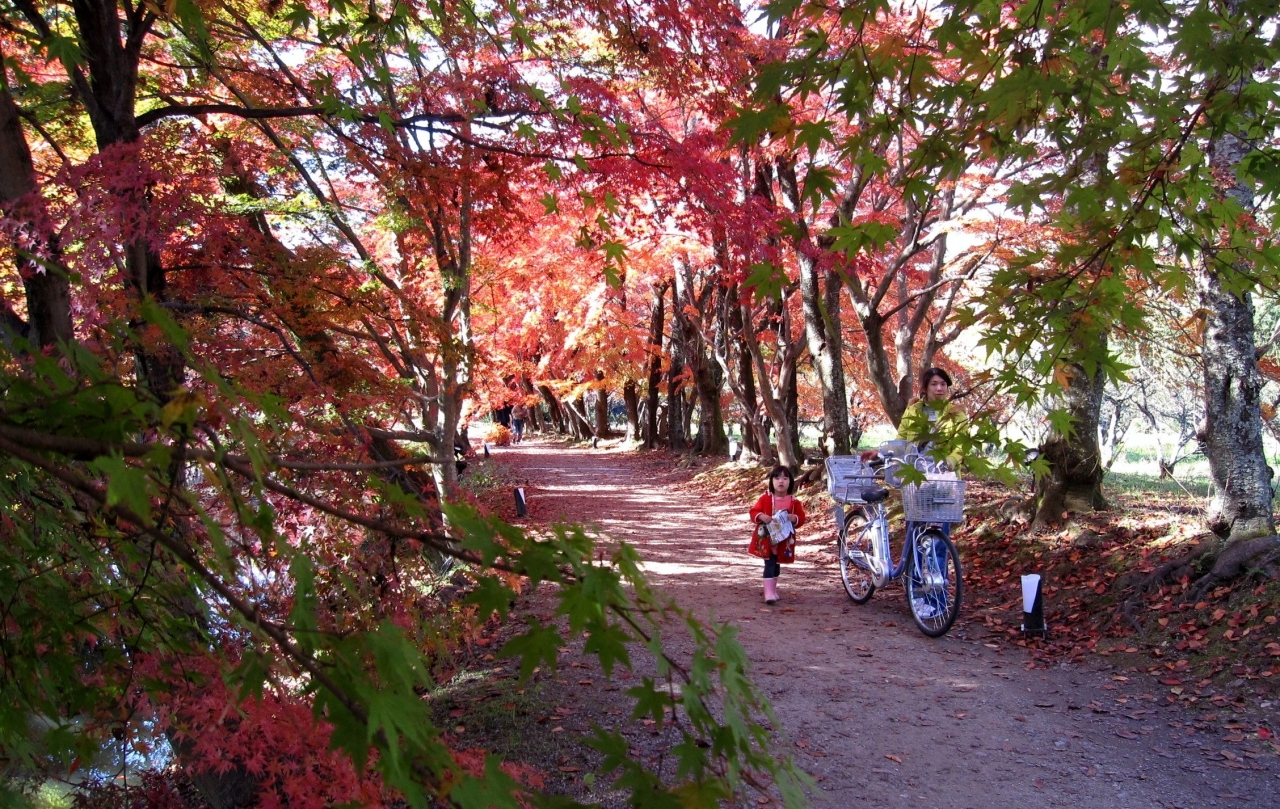 境内の「さがの梅林」と「大沢池」の間にある「もみじロード」に