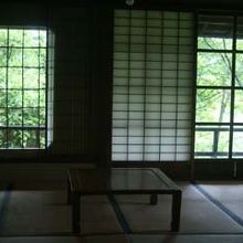小諸市児童遊園地からさらに坂を下っていくと中棚温泉がありますが、温泉の営業開始まで時間があり、途中にある水明楼に寄っていきます。茅葺の日本家屋で、日中は無料で公開されていて、スリッパを履いて急な階段を上ると、畳敷きの座敷があり、窓から千曲川の谷とすぐ下に中棚荘の玄関が見えています。しばらく座敷に寝ていると、樹に囲まれてヒグラシの声が聞こえて、別荘の一室に来た気分でした。