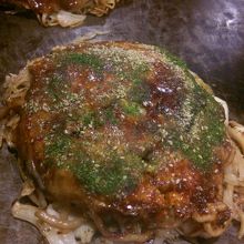 広島風お好み焼きで、そばかうどんを選べます。うどんは珍しくて美味しいです。マヨネーズだけではなく、コチュジャン風味の辛いタレと、明太マヨネーズもあって変化をつけながら食べる事ができます。ただちょっと高めかなー。うどんの方がボリュームがありますよ。