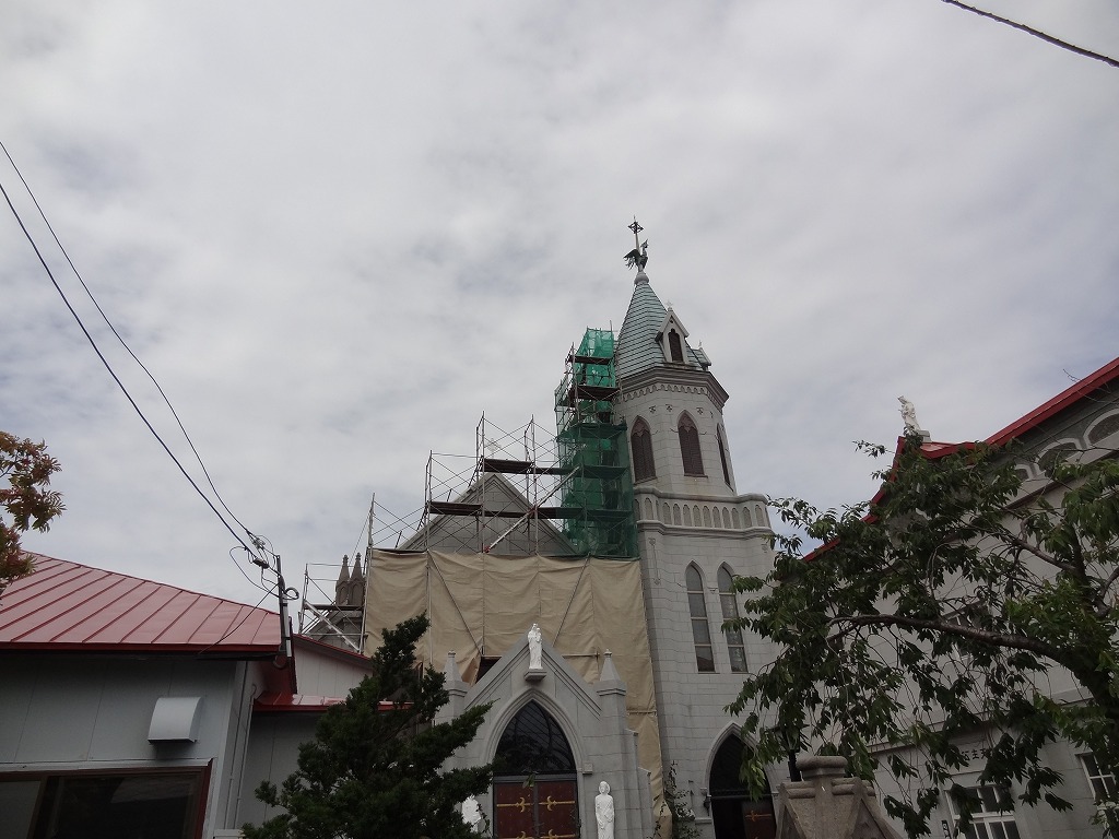 元町教会群の中のひとつで、ハリストス正教会のすぐそばに建っています。高くそびえる鐘楼と、その上で羽を広げる雄鳥が目印の美しい教会です。