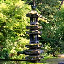 霞ヶ池に浮ぶ蓬莱島は東にある立石が亀の頭、西にある石塔を亀の尾と見立ているのが蓬莱島の石塔です。亀甲島とも呼ばれているそうです。藩政時代いまの茶店街の中央にあった内橋亭の露地に据えられていたが、蓬莱島を亀に見立てるため、現地に移されたといわれているそうです。