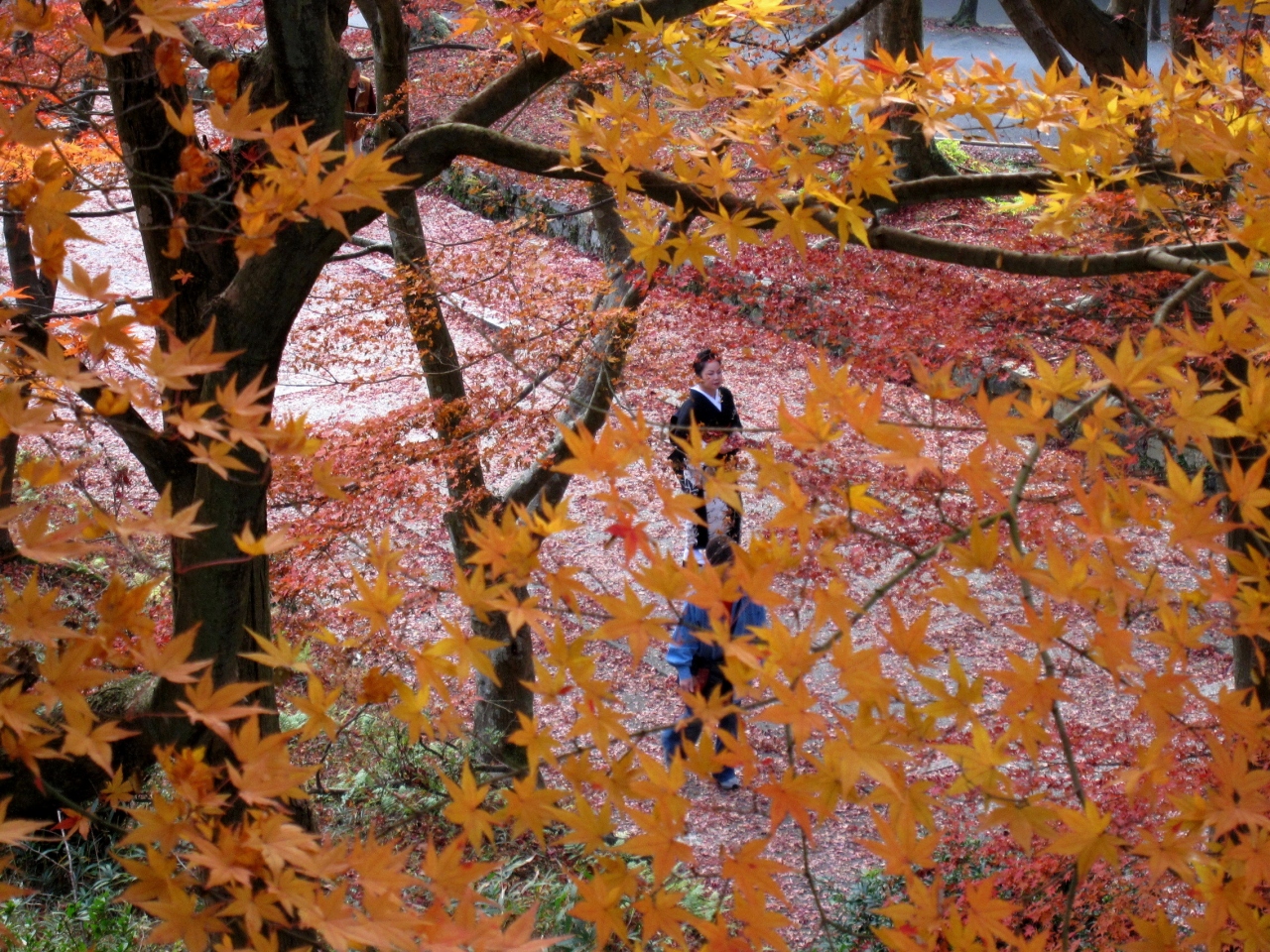 午後の陽射しを浴び、一段と鮮やかになった紅葉、