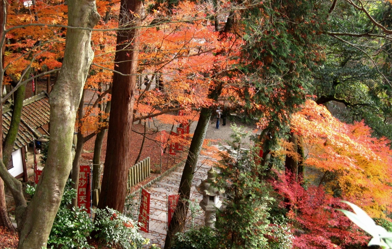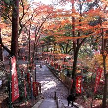 その紅葉に囲まれた参道、弁天堂等がとても美しかった。