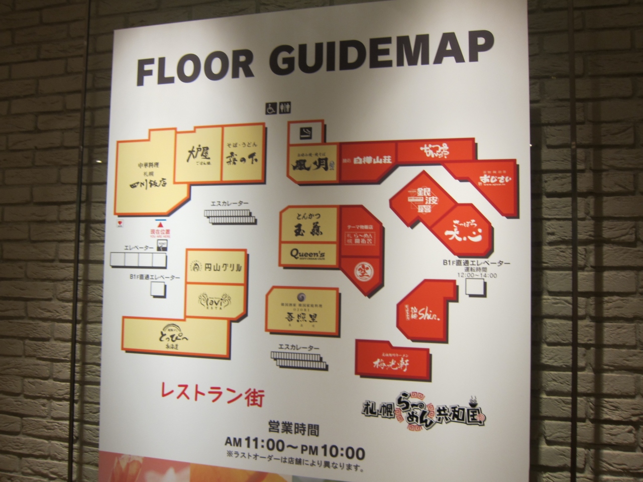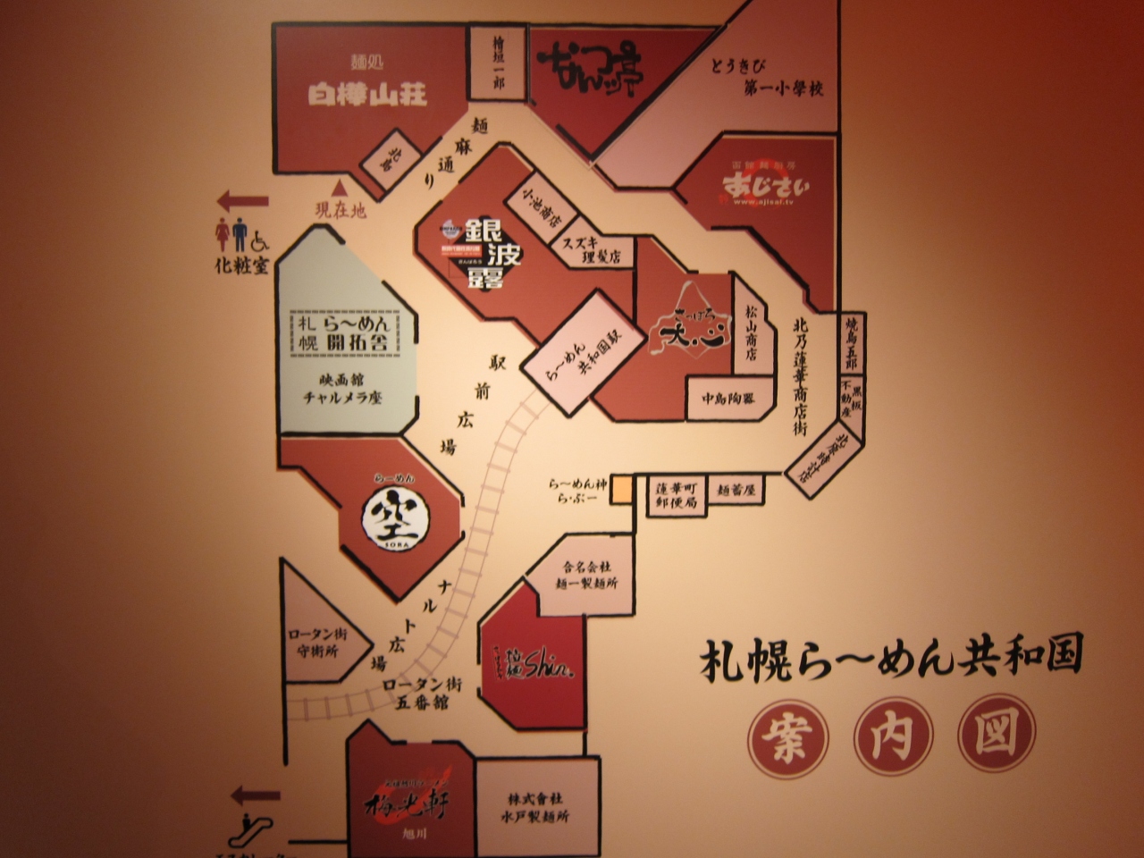 札幌駅を出て左(東)側。ESTAの10階に入っています(札幌駅からは地下から移動するとスムーズです)。アクセスがよくて手軽で便利です。北海道各地(中には道外も)の有名ラーメン店が数軒入っています。店は人気投票により入れ替えがありますが、梅光軒や白樺山荘はずっとありますし、千歳空港の北海道ラーメン道場などでも食べられる有力店なのであせって食べることもないかと思います。もっとも、その時一番気に入ったメニューを食べるのがいいと思います。店は昭和の札幌の雰囲気を漂わせる作り。好みの店を選んで入ります。各店はESTA内の他の店同様、Suica、Kitacaなどの電子マネーも使えました。