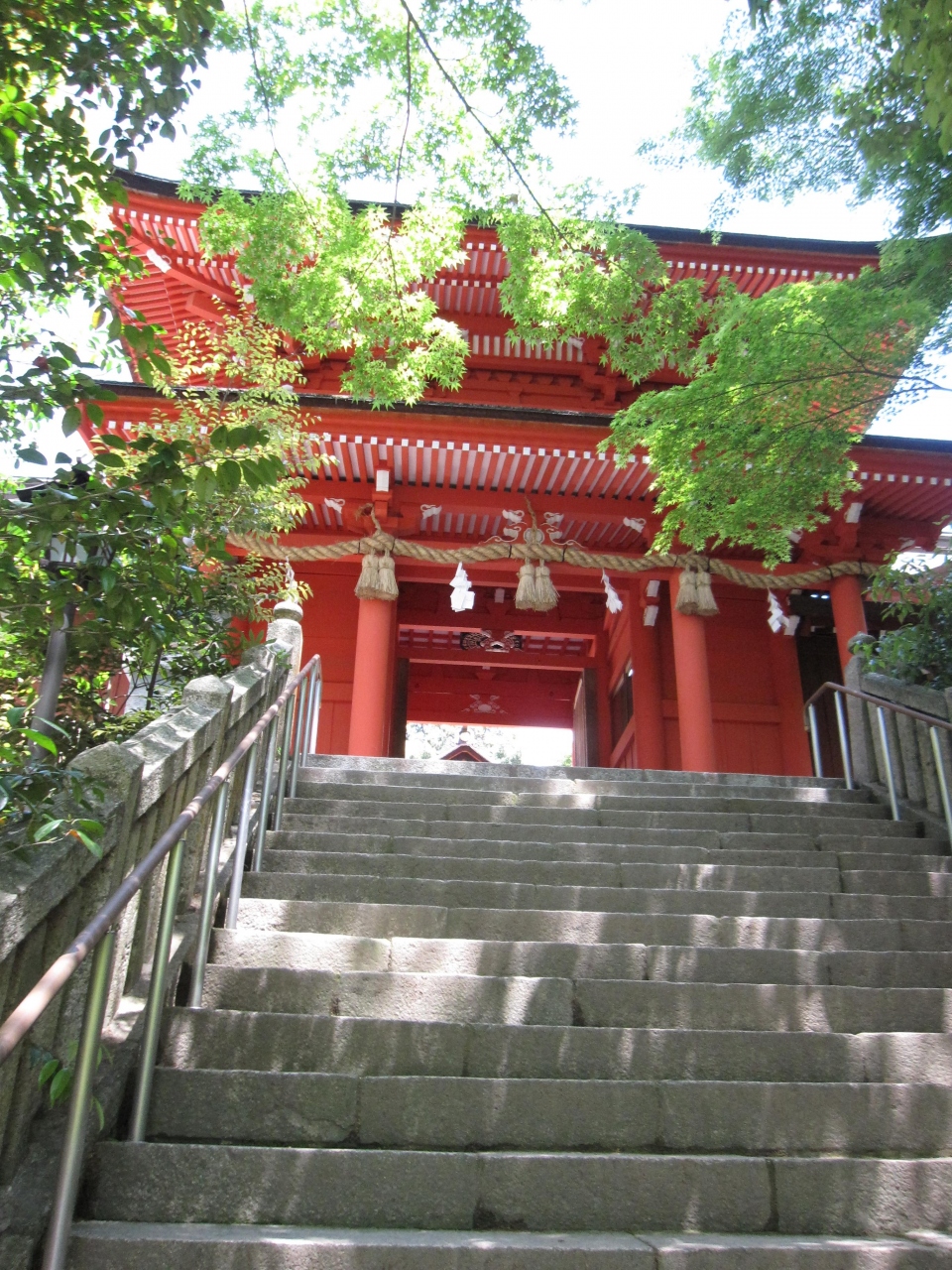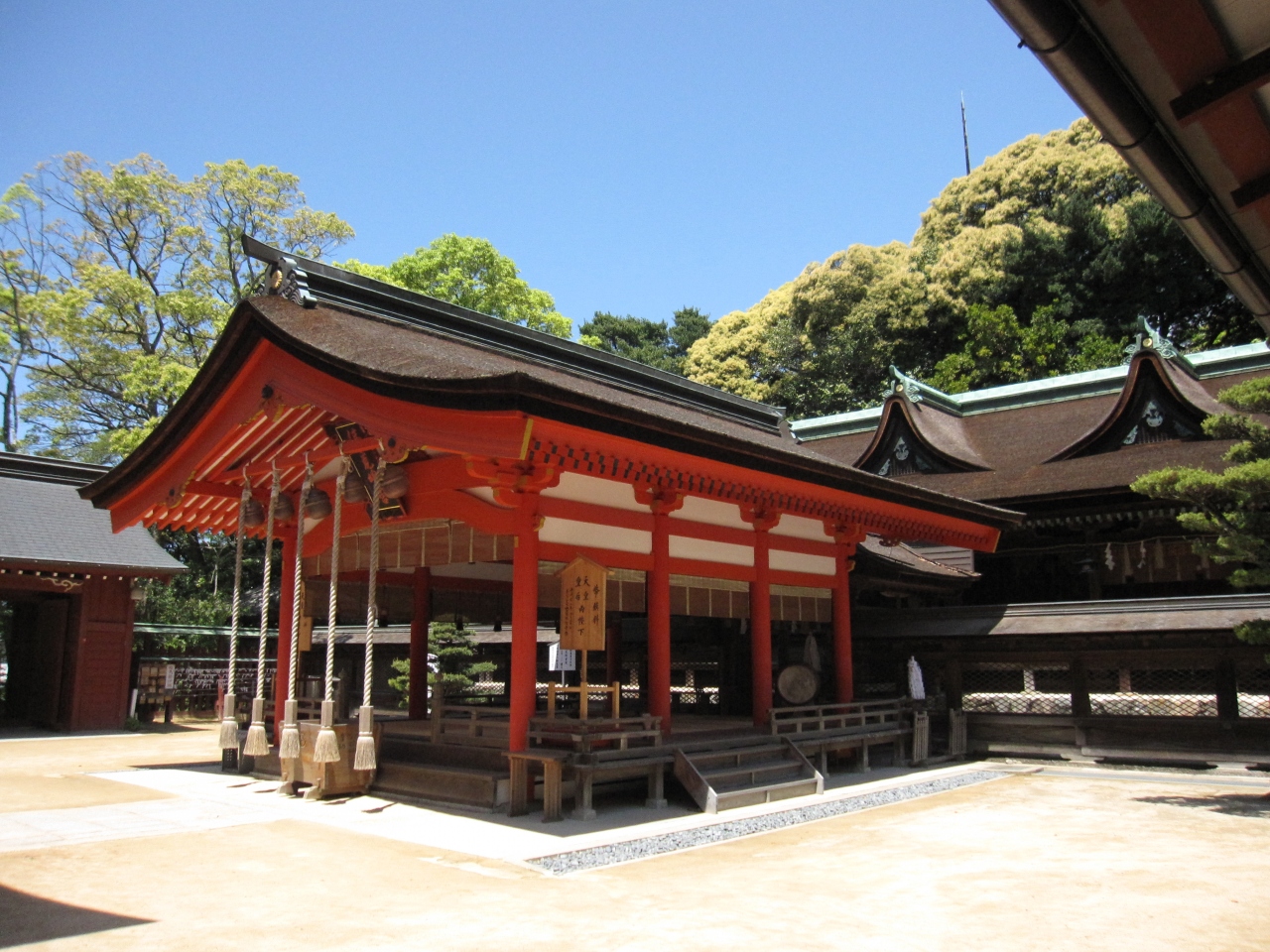 長門の国の一の宮、住吉神社は、大阪の住吉大社、博多の住吉神社とともに日本三大住吉とされる由緒正しいお宮です。神功皇后が三韓征伐の戦勝祈願のために建てた祠からはじまるそうで、日本書紀にも記載のあるお宮とのことです。海神である住吉三神のほか、神功皇后などをご祭神とするお宮です。場所は新下関駅(昔は、長門一宮駅でした)からバスか車で移動です。ご神託により「穴戸の国(長門の国の古称)の山田邑に祀れ」とのことで、お宮が建てられている場所は、海から離れた場所です。古代でもここからは海が見えなかったのではないかと思います。国宝に指定されている九間社流造の本殿、毛利元就が寄進した切妻造桧皮葺の拝殿は美しく厳かです。