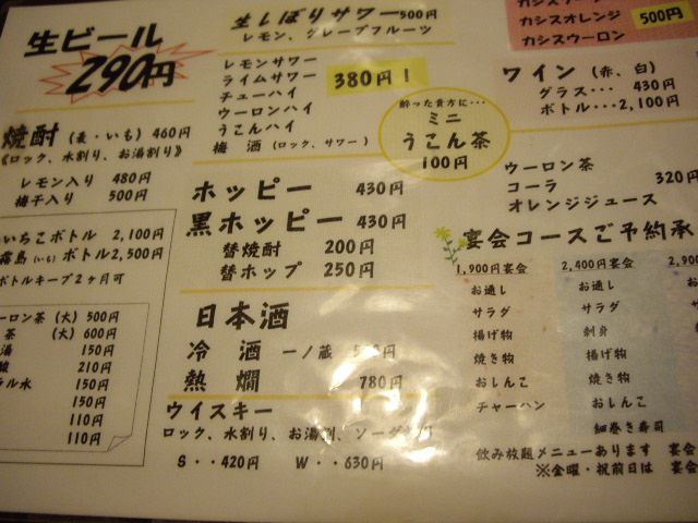 ビールが安い!が売りですね、あとお鍋も美味しい。