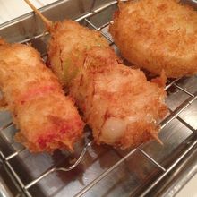 お通しはないようで、100円から150円代の串焼き、串揚げ、ごはんものやお刺身を取り揃えています。