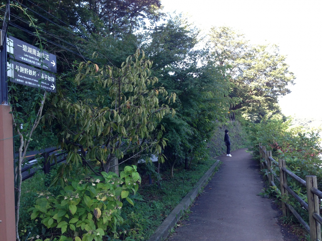 一碧湖ホテルに泊まり、朝の朝食後の8時半から小一時間散歩した。