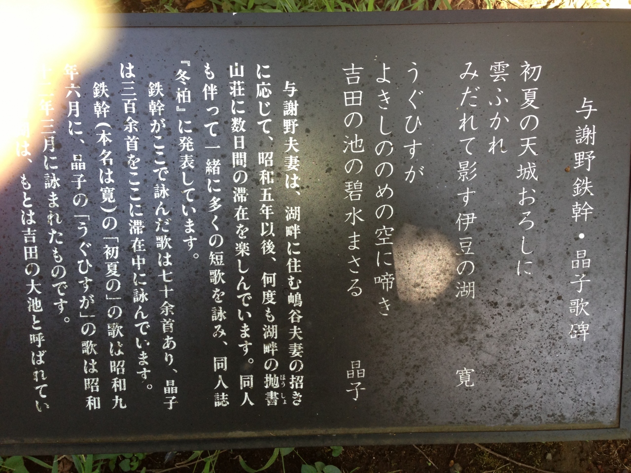 一碧湖の周囲は4kmだそうだが、30分ほど散策して与謝野晶子の碑まで行く