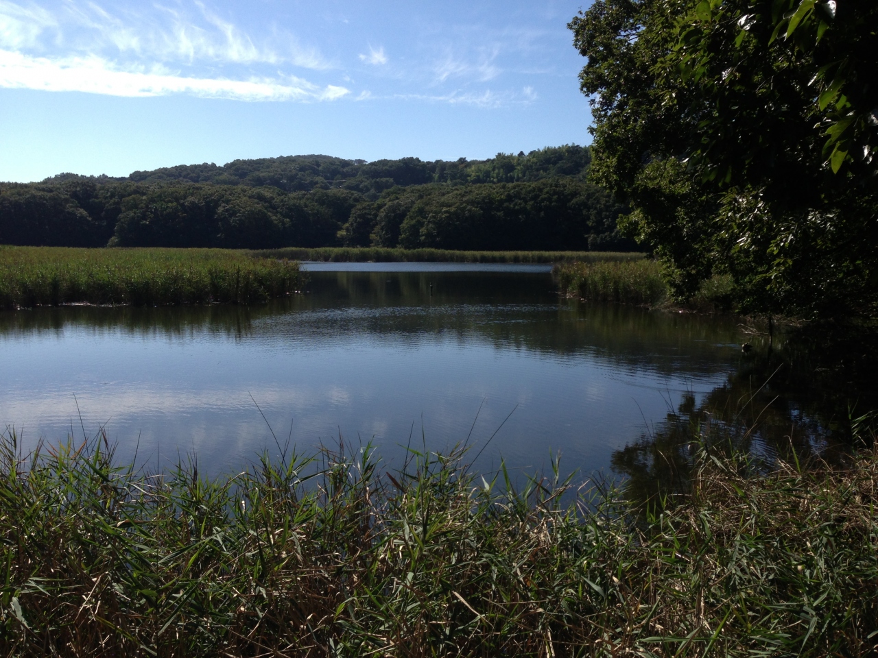 湖の周囲に散策路が造られており、湖を見ながら散歩できる。