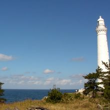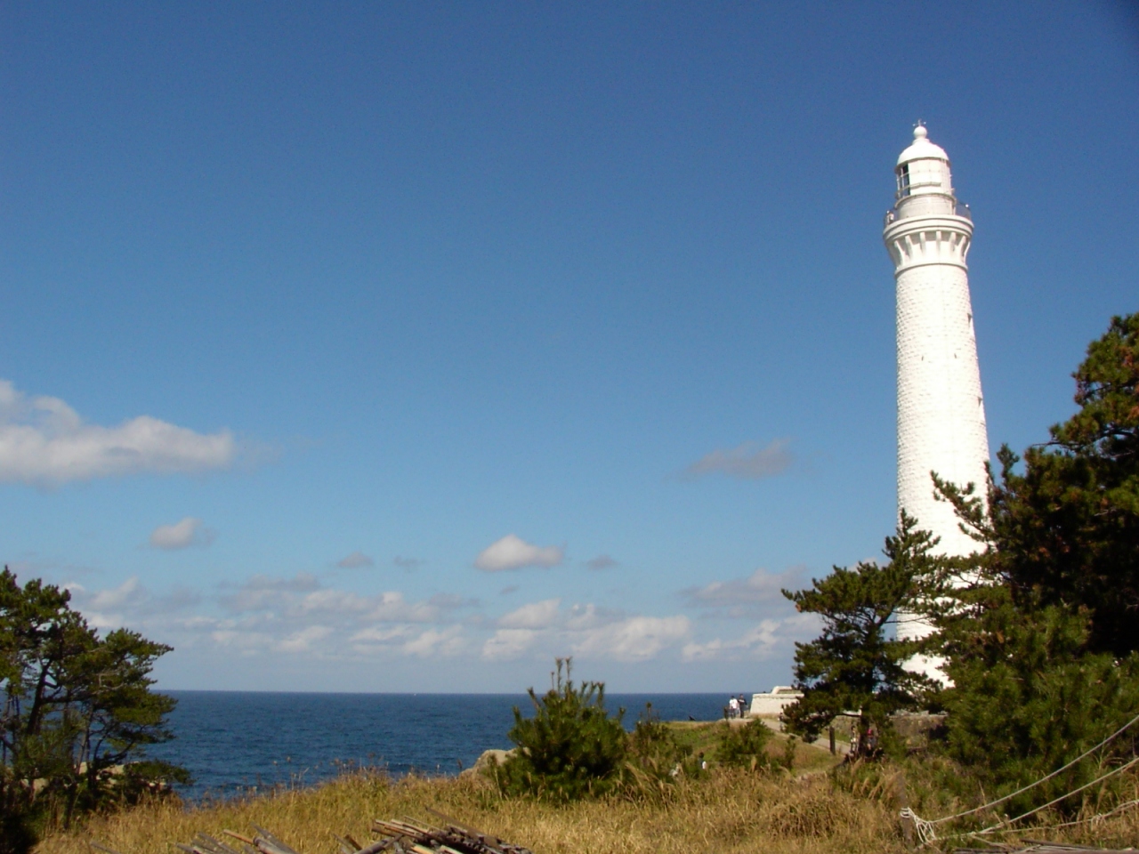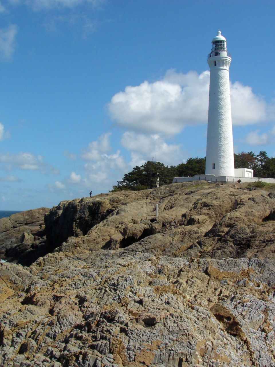 一般的な灯台が高さ20m程度なのに対し、明治30年代に創建されたこの灯台は高さ43mあります。さほど高台にあるわけではない(標高20mほど)のでそれだけの高さになったようですが、200円の料金で見学するとどこまでも広がる日本海を見渡すことができます。灯台の根元にある安山岩の柱状節理もまた灯台のすらっとした美しさに花を添えています。