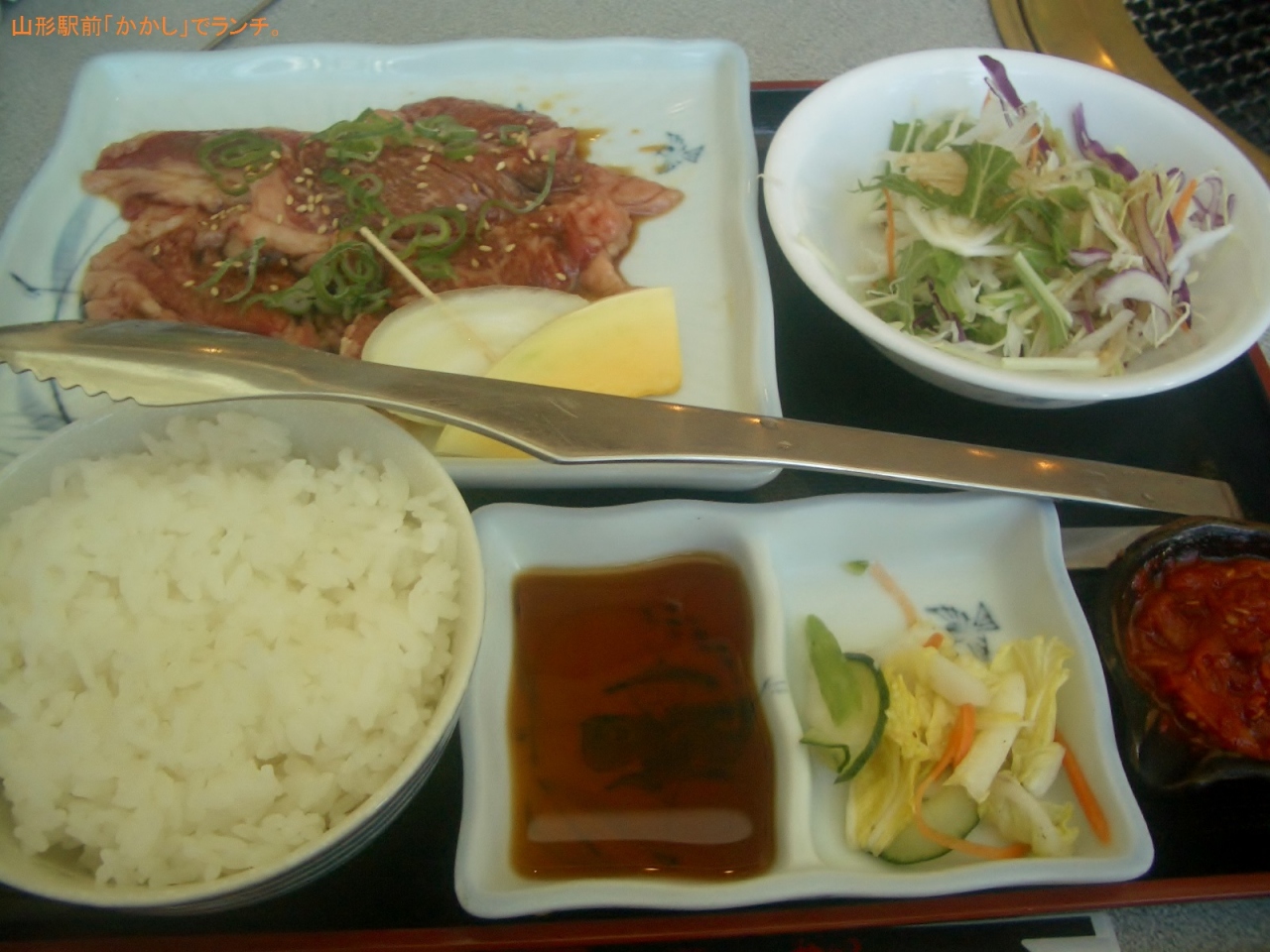 注文したのは、山形牛カルビと冷麺のセット。