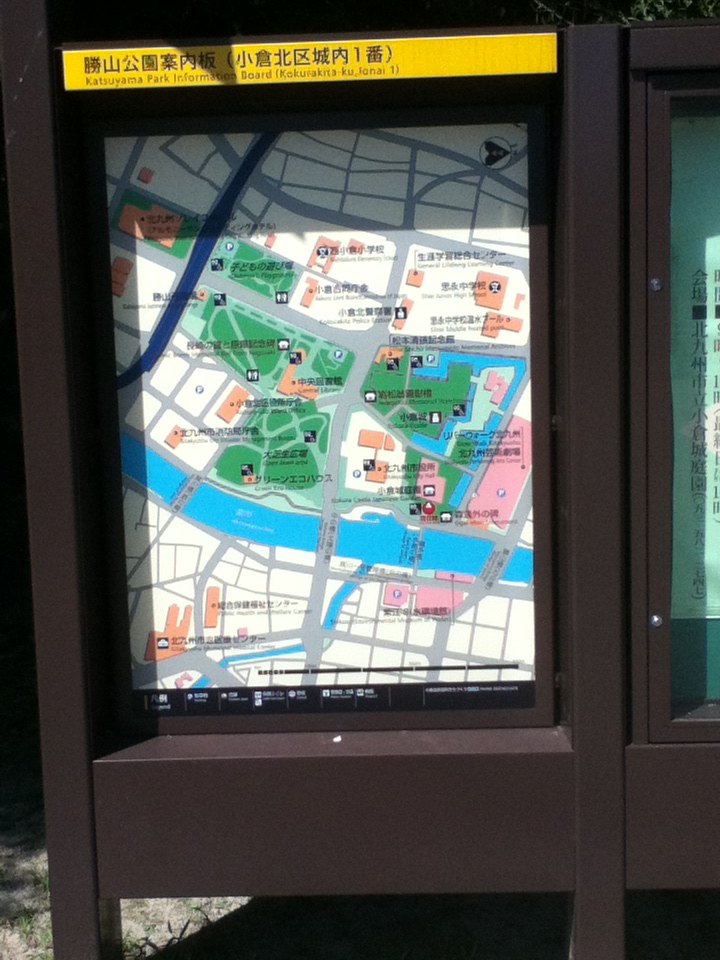 小倉城から大きな道路を挟んだ位置にある勝山公園ですが、規模としてはかなり大きな公園です。川沿いを眺めながら歩いてくると、駅からは結構距離があるのですが、散歩コースとしては良いので、案外すぐについてしまうと思いますよ。