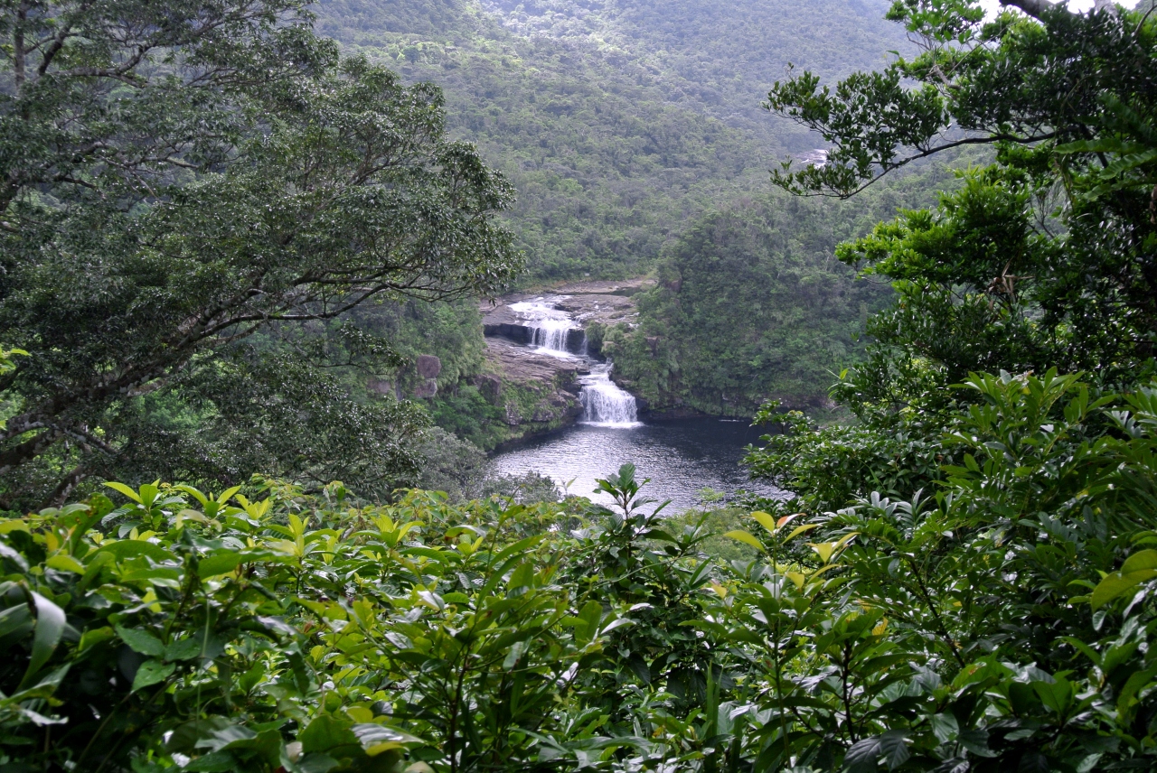 ここから約30分間、獣道に近い一本道の登山道をトレッキングするとマリユドゥの滝の展望台に到着する。