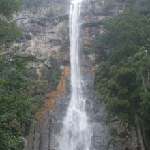 飛瀧神社は、熊野那智大社の別宮になるそうで、祭神は大己貴命(おおなむちのみこと)とのことですが、我々の知っているところでは大国主命だそうですね。滝を望む鳥居の横にある社務所で、参入料300円を納めるとより近い「お滝壺拝所」に行けます。なお、ここには本殿も拝殿もありませんので、ご神体の滝を直接参拝することになります。