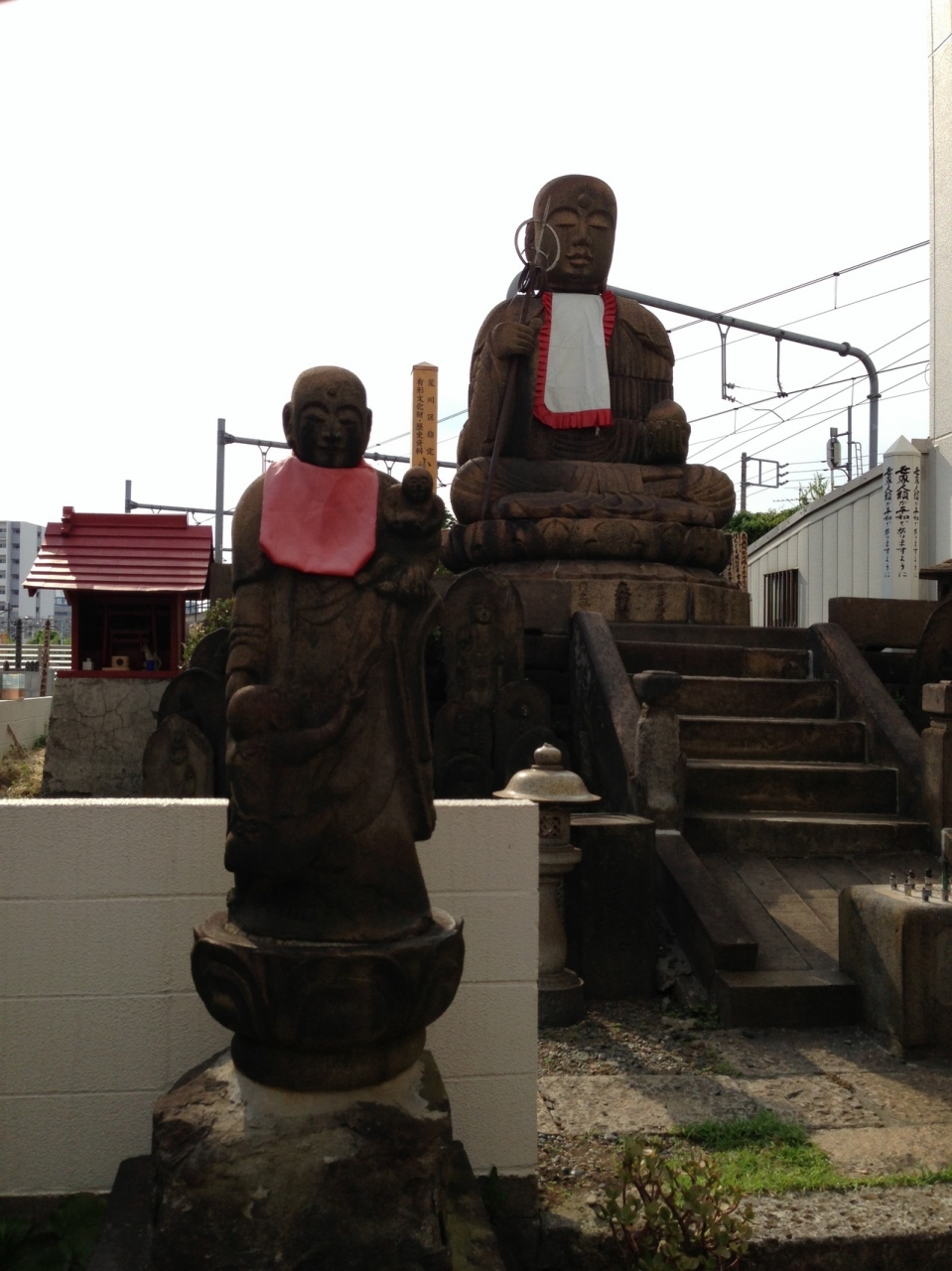 延命寺さんは、常磐線と日比谷線の線路に挟まれた場所に位置し、特に高さ3~4mほどの大仏「首切地蔵」がよく見えます。