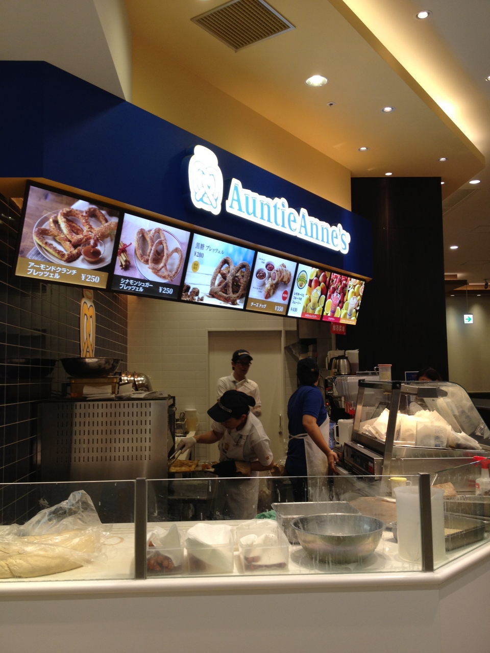 ダイバーシティ2Fにあります。プレッツェルというと、固くてちょっと味気ないイメージでしたが、店頭で配っていた試食を食べてびっくり!外はカリっ、中はもっちりした食感で、シナモンもきいていてすごく美味しい。人気店の理由がわかりました。もちろん翌日の朝食等に並んで購入~・笑
