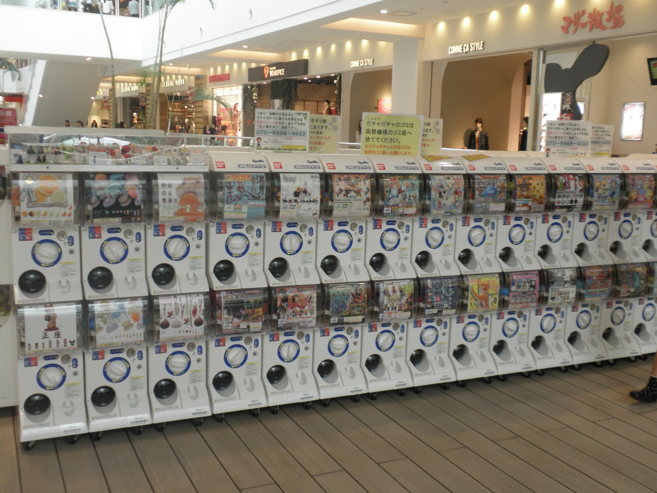 中にはいっている店舗もさまざまですが、ガチャポンの置いてある場所が意外に込んでいて子供も大人もガチャガチャしていました