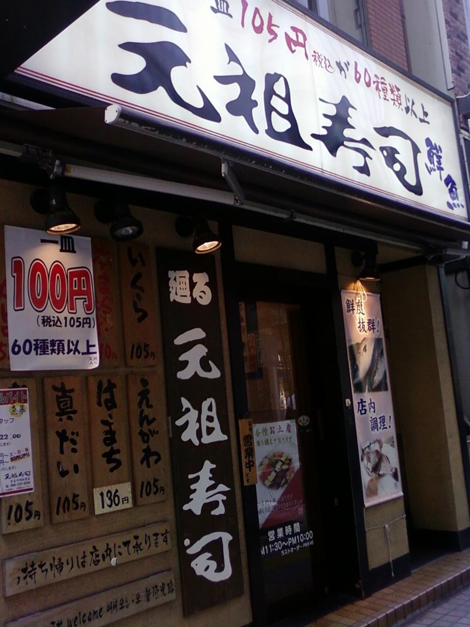 元祖寿司は、京浜急行線川崎駅から1分もしないところにあります。店内はカウンター席のみですが、十分な数の従業員が控えていて、注文を握ったり、会計や後片付けに俊敏に対応していました。ネタは少し物足りない感じもするものもありますが、安いから納得です。店内に明るい雰囲気があるのがとっても素敵でした。