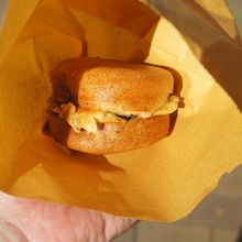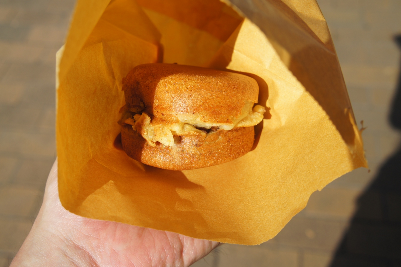 とらやは、若松駅前にある人気の今川焼のお店。今川焼は、茂兵衛まんじゅうというようです。分厚くて、上下の合わせがけっこう適当。皮やあんがはみ出て、形は乱れまくりなんですが、これがうまい。表面はカリッとしているのに中はしっとり。餡子もどっしり入って、「見た目はどうでもいい。おいしけりゃいいんでしょう」という強い主張を感じる一品です。