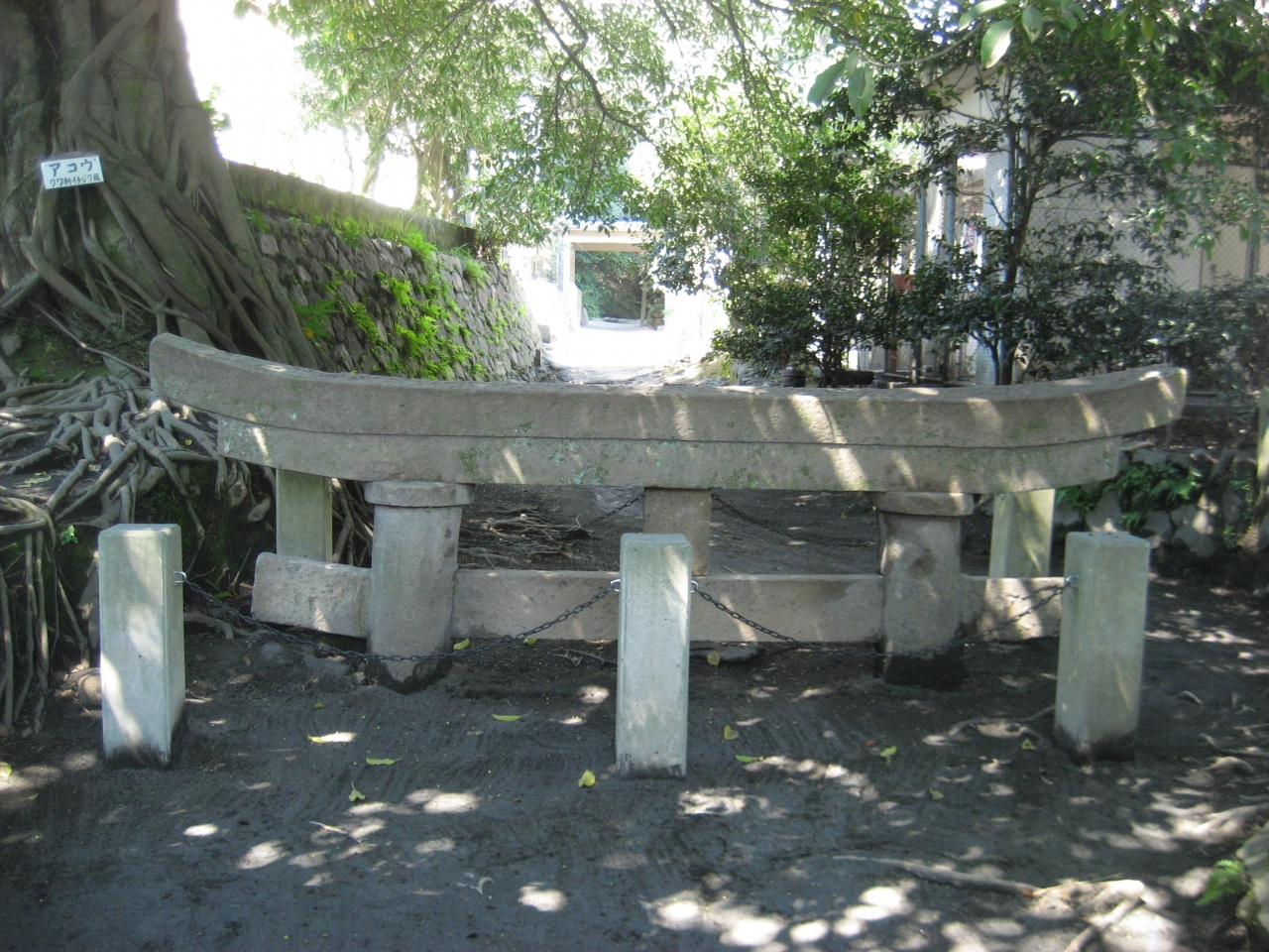 大正3年1月12日に起こった桜島の大噴火によって、火山灰や軽石で埋まってしまった鳥居。