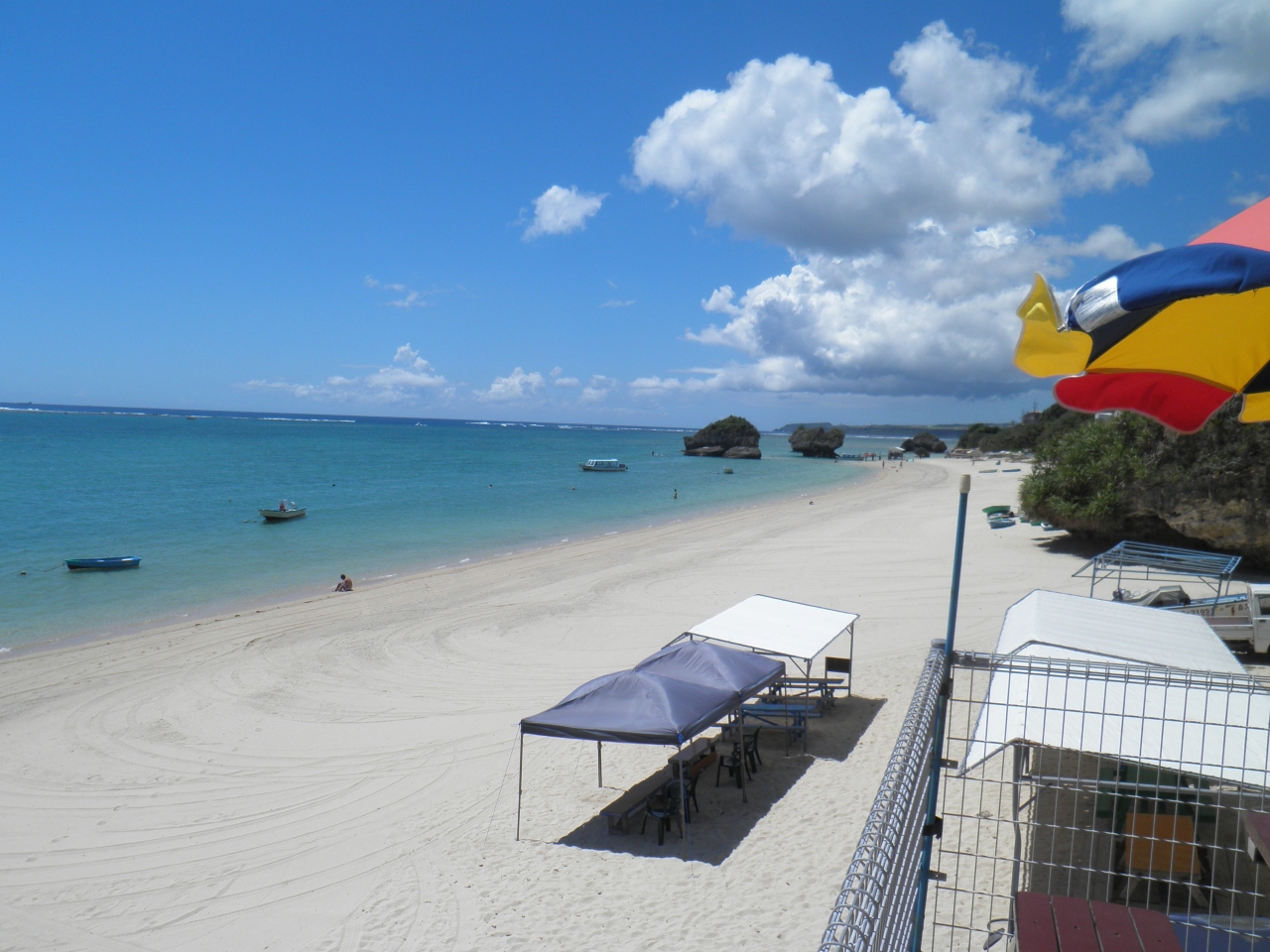 那覇からレンタカーをかりて、沖縄本島南部をドライブしました。 みーばるビーチは坂を下ったところにある、青い海と砂浜が印象的でした。 本部半島によく行くのですが、ここのビーチは、岸壁が迫っていて印象が違う気がしました。 急な階段があったので、脚が丈夫じゃない人と一緒なので、眺めるだけにしました。