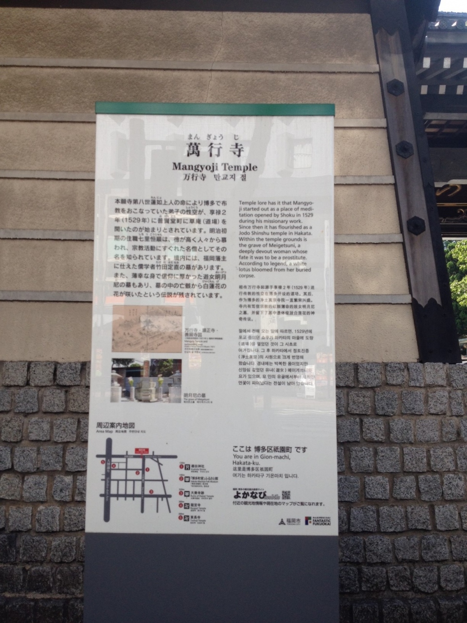 祇園駅から徒歩5分の範囲にお寺や神社が沢山あります。1時間もあると結構お寺参りが出来る地域だと思います。その中の一つの萬行寺ですが、入り口はおおきなな道路沿いですのですぐに分かります。夕方行くとすぐにお寺がしまってしまうのでご注意ください。