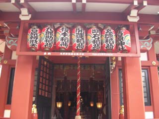 樋口一葉記念館から南下すると吉原神社があり、浅草七福神の弁財天で境内には、吉原の昔の地図が貼ってあり、「おはぐろどぶ」に囲まれた吉原の範囲が、そのまま現在の道路の区割りになっていて、吉原大門からの道の曲がりがそのままなのが分かります。