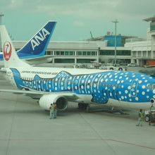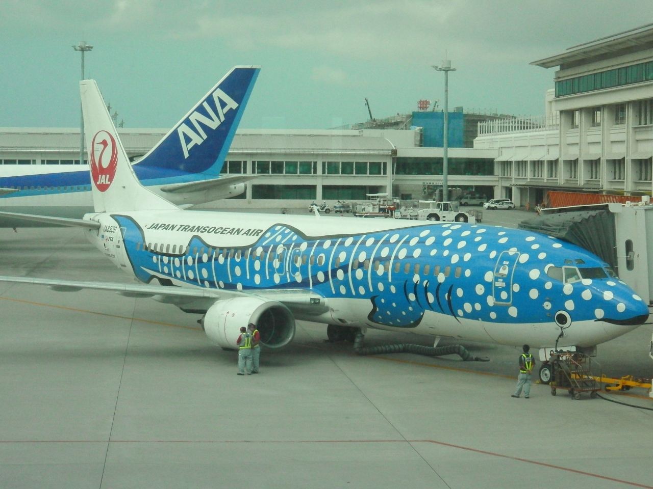 偶然ですが、ジンベエザメのペイントをされた【飛行機を発見しました。