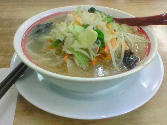 お目当てのちゃんぽんを頼むと、野菜やキクラゲが山盛り、スープはさっぱりの長崎で食べた時のを思い出すようなボリューム満点の一杯が出てきて、その旨さに、意外にあっさりと完食してしまいました。