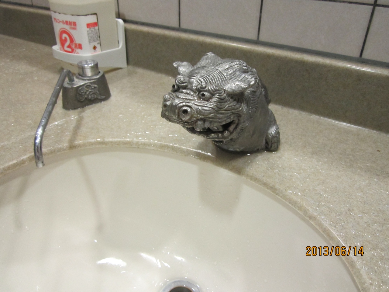 この近くにあるトイレは、手洗い蛇口がシーサーになっていて