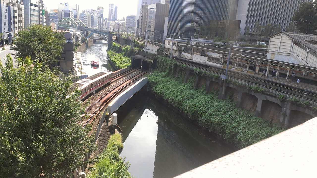 湯島聖堂方向から歩いてきて橋の中ほどから左側お茶の水駅を見おろす感じがたまらなくかっこいいです!