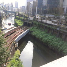 川縁の蔦が絡まる感じと、ビルの具合と、線路の感じが絶妙によいです。