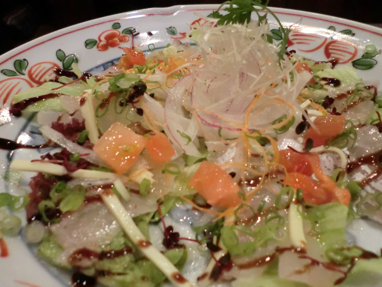 頼んだカルパッチョは今ひとつで、豚平焼きはまあまあ。
