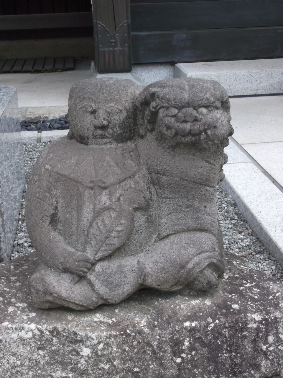 ここのお寺は新しそう・・変わってる珍しい光景があります。それは、山門潜ると狛犬が迎える・・本堂前にも狛犬(?)のようなのがあります(説明し難い)。