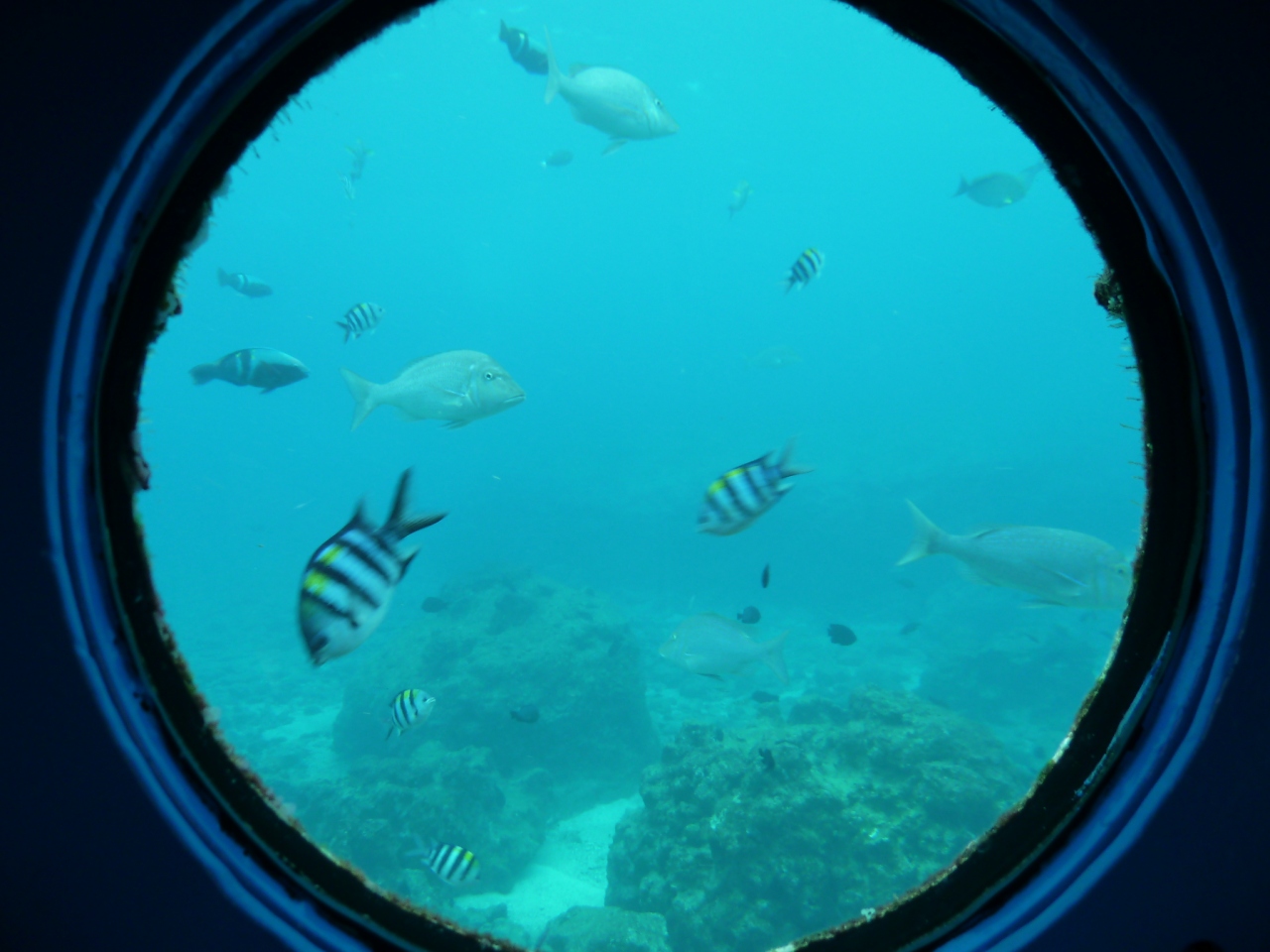 海中展望塔までの橋から見る海もなかなか迫力がありますが、塔の中から海の中を見るときれいな熱帯魚がたくさん見られます。イソギンチャクに寄り添うようにクマノミもいました。水族館ももちろん良いですが、自然の海の中が見られるこちらもおすすめです。グラスボートと違って揺れないのも快適です。