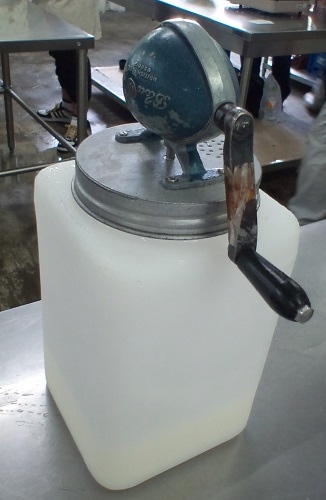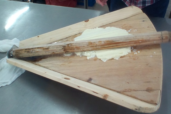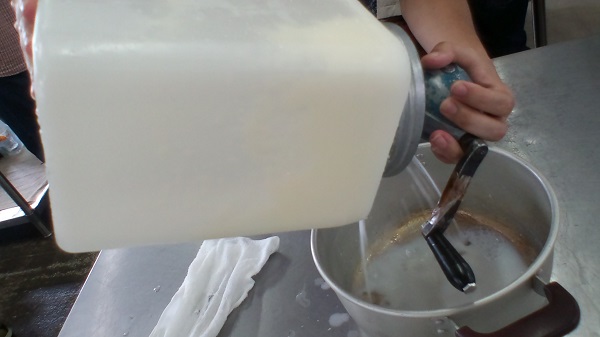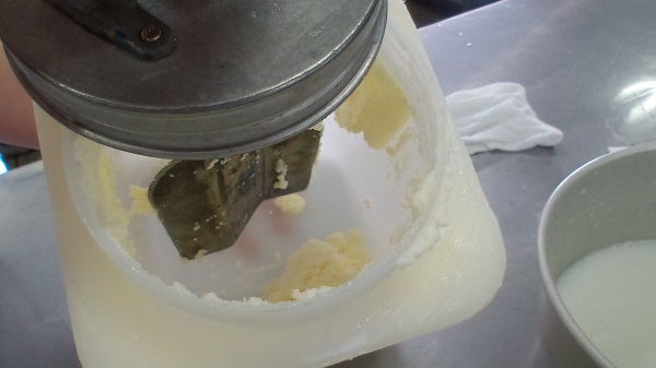 専用の器具で牛乳をかきまぜ続けること20分以上?