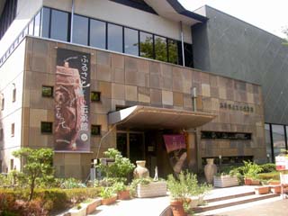 湧暇李の里樹園に入った後、バスの時間まで時間があるので、隣にある無料の「ふるさと文化伝承館」に寄っていきます。靴を脱いでスリッパに履き替えて1階の展示を見ると、昔の農機具などが並んでいます。2階の展示は、節電のため電気が消えていますが、説明員の人が電気をつけてくれて、甲府盆地の地図を見ると台地の末端に遺跡が多くあり、鋳物師屋遺跡から出土した重量文化財や土器が展示されていました。