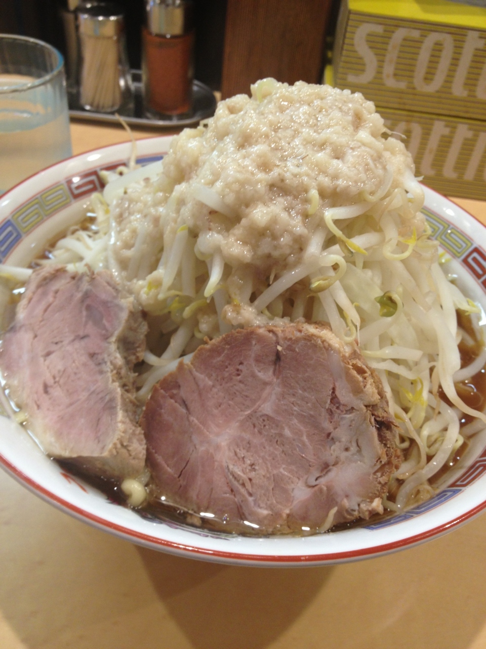 じゃかりきのラーメンはボリュームが売りです。きょうは普通もりを注文しました。それでも、このボリュームです。お店の人に、「この前も来てくれたね」といわれ、もう』3ヶ月も前だったけど顔を覚えてくれていて感激しました。
